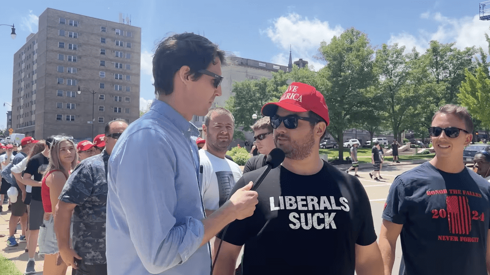 20 HILARIOUS reactions to man wearing 'Liberals Suck' T-shirt being confidently DUMB