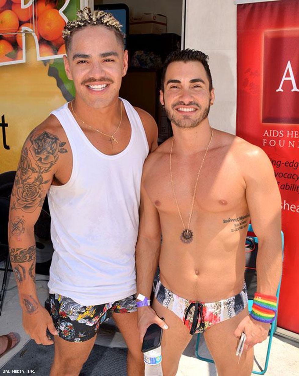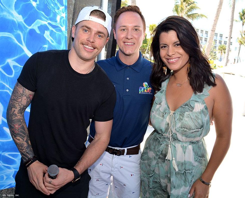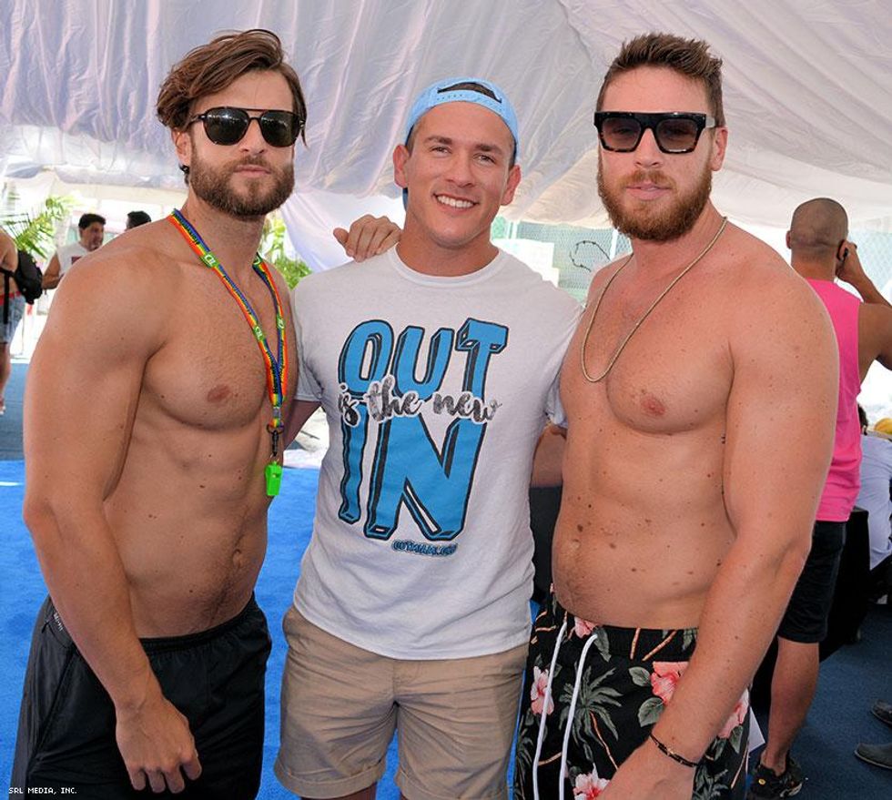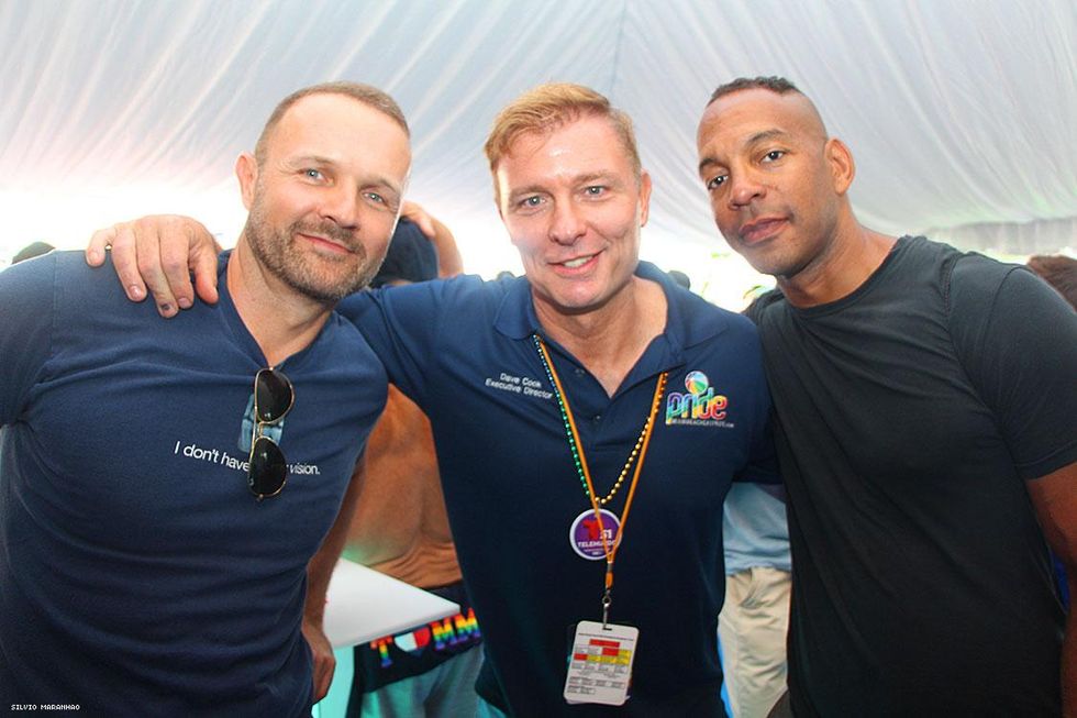 Olympic Gold Medalist and Pride Grand Marshal Gus Kenworthy (left) leads the parade with boyfriend Matthew Wilkas (right) and friend!