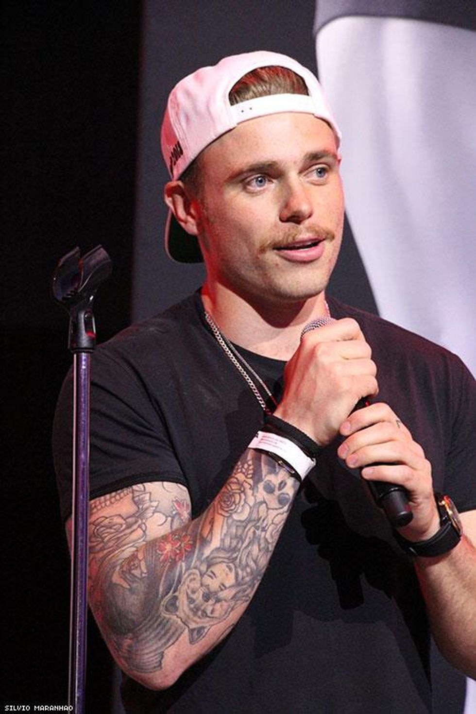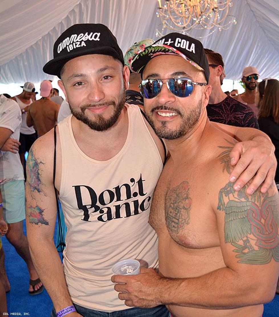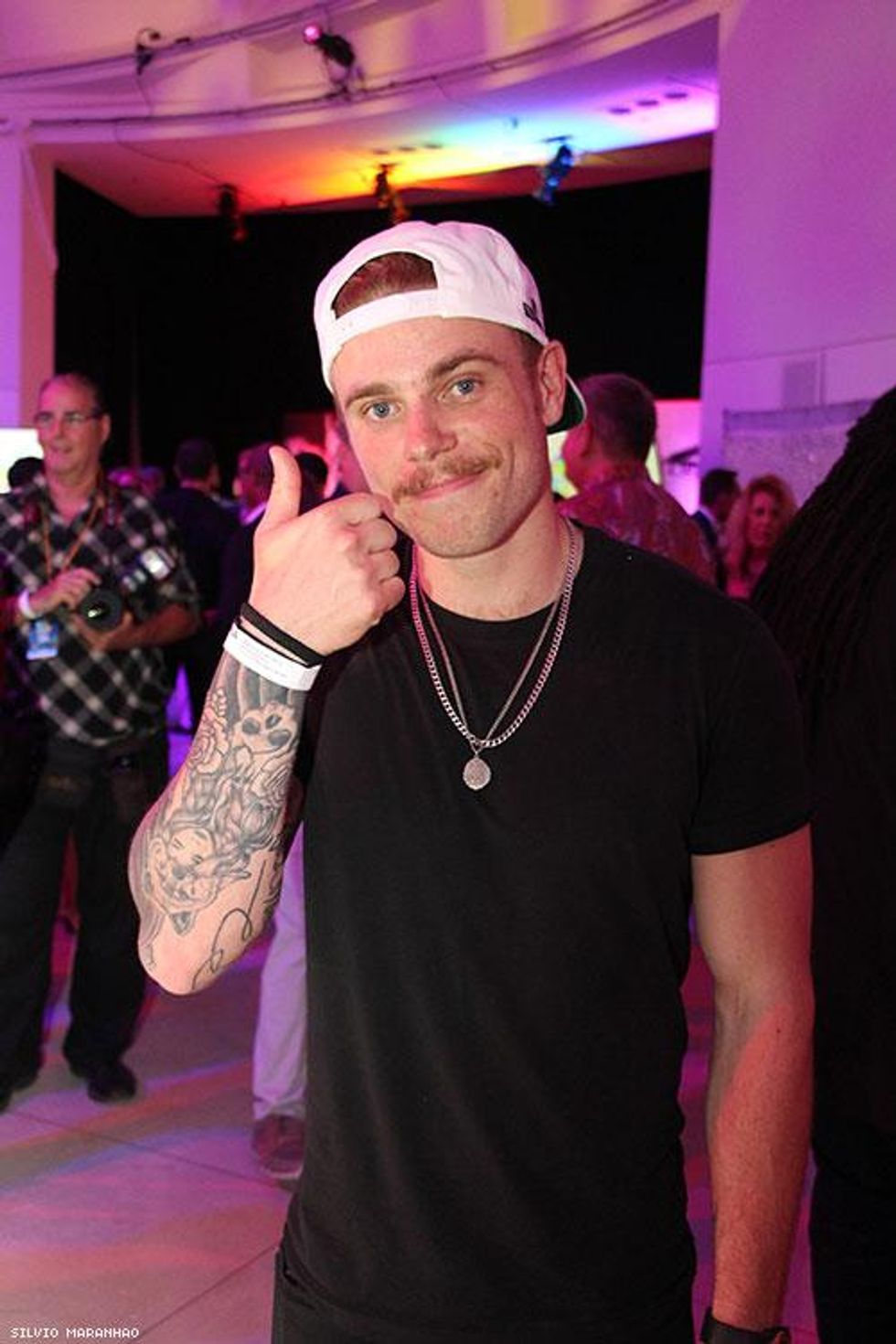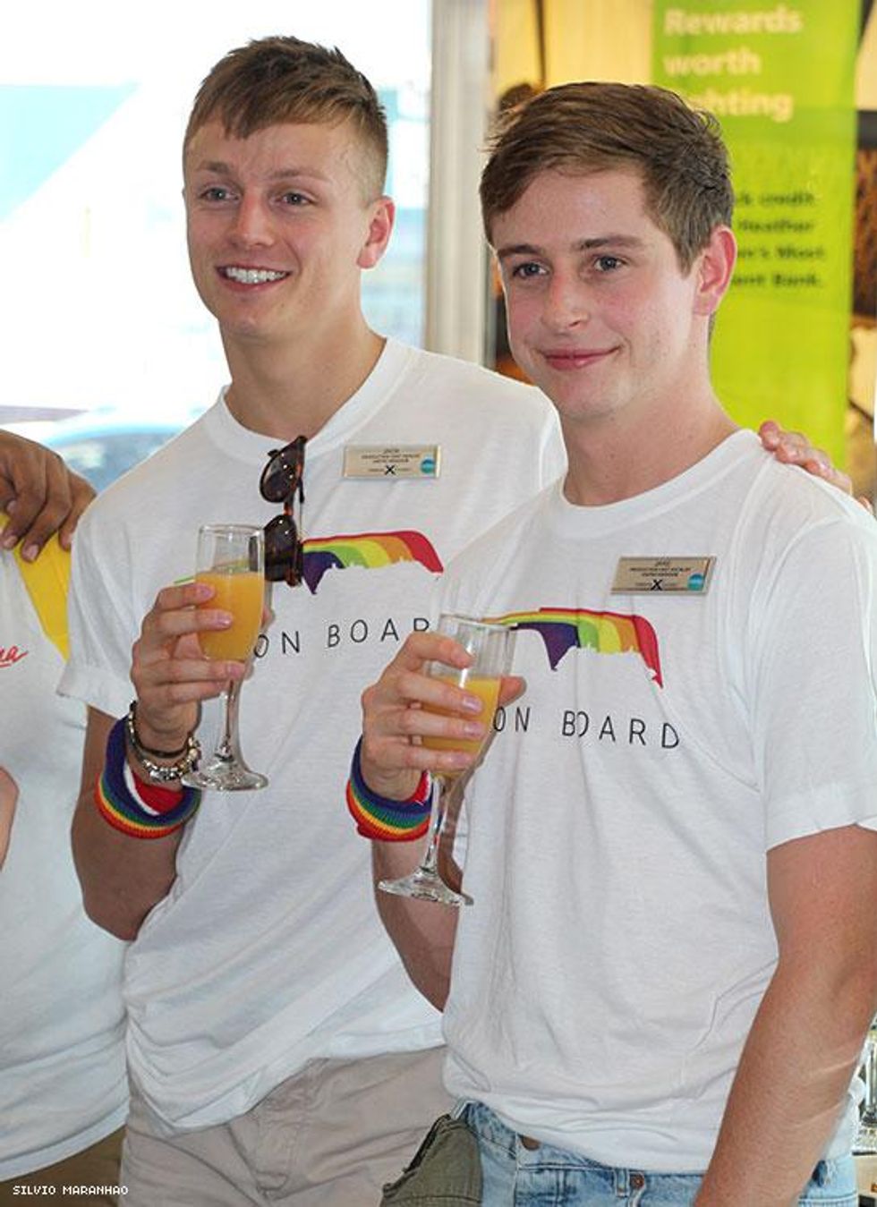 Olympic Gold Medalist and Pride Grand Marshal Gus Kenworthy (left) leads the parade with boyfriend Matthew Wilkas (right) and friend!