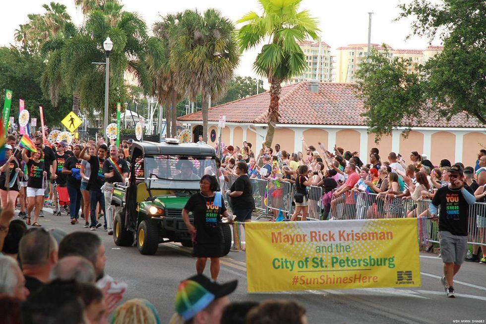 With over 200,000 attendees expected, St. Petersburg's Pride Parade and events draws the largest crowd in Florida of any of the Pride celebrations. Parade attendees—both LGBTQ and their supporters—waved rainbow flags, transgender pride flags, and more while clambering for beads from passing floats and marchers, said the Tampa Bay Times.