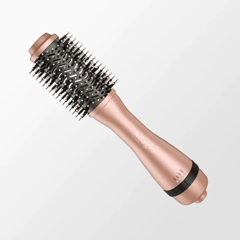 Reinvent your blowout game with Adagio's California Professional Blowout Brush. Combining the power of a hair dryer with the volumizing prowess of a large oval brush, this all-in-one styling tool promises salon-worthy results from the comfort of your own home. Embrace the spring breeze with hair that's as radiant as the season itself.
