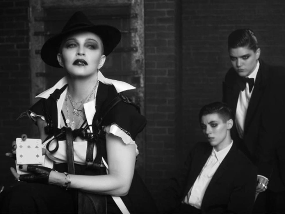 Madonna honored International Women's Day this week by releasing a 12-part short film in collaboration with Vogue Germany titled "Her-Story," directed by Luigi & Lango. The film mixes butch, suit-clad looks with both soft and rough androgynous ones, and begins with a political declaration regarding normativity and the dangers of being queer.