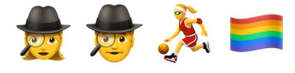 In addition to the rainbow flag, Apple added 72 new emoji including new skin tones, a dude walking and this woman wearing a bearskin.