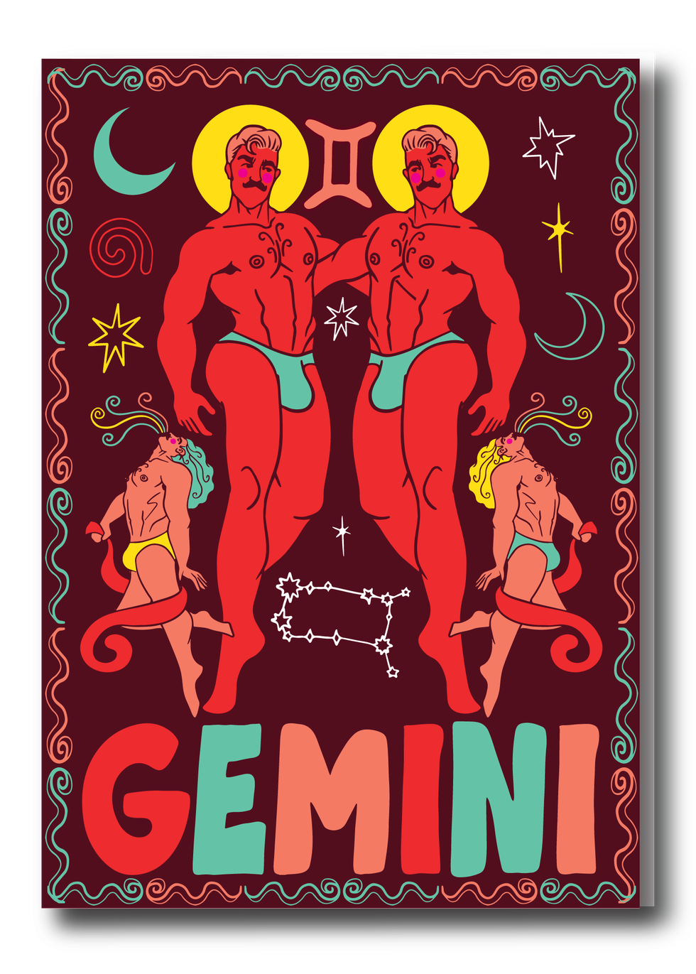 Adam Dalton Blake draws inspiration from pop culture, history, and a wide array of art styles, but his approach to incorporating humor and wit into his illustrations sets him apart. Blake’s zodiac series is a perfect example of his ability to reinterpret well-known imagery and blend it with his cheeky aesthetic. "The zodiac series is one of my favorites. It's always fun to see how my audience reacts to how I’ve interpreted their astrological signs," Blake says. The interplay of colors, symbols, and facial expressions in each piece elevates the zodiac sign’s essence and infuses it with a fresh and modern spin. It’s art that doesn’t just hang on the wall; it speaks to the viewer, creating a dynamic connection.