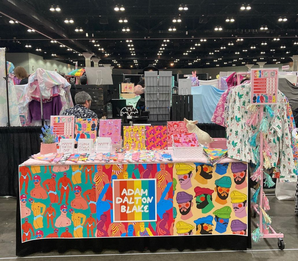 Blake’s art reached new heights in 2023 when he debuted at DragCon, a crucial moment that allowed him to showcase his artwork to a massive, supportive audience. "The experience at DragCon was transformative for my brand," he recalls. "It was the first time I showcased my work on such a big scale, and the response was beyond anything I could have imagined. Seeing people interact with my prints and wearing them with pride was a huge affirmation that I was on the right path." His booth, adorned with his signature colorful prints, greeting cards, and tote bags, quickly became a hub of activity, proving that Blake’s style resonated deeply with people who embraced self-expression, inclusivity, and fun.