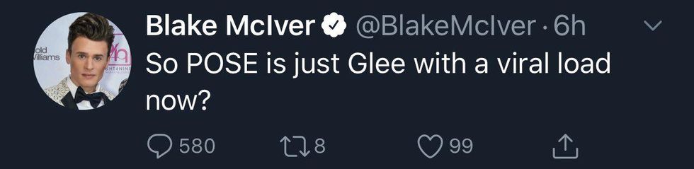 "So POSE is just Glee with a viral load now?" Blake McIver, former child actor and star of The Little Rascals, tweeted in a very poor attempt at humor. As expected, not one person found McIver's serophobic joke funny, and people rightfully took to Twitter to call him out: