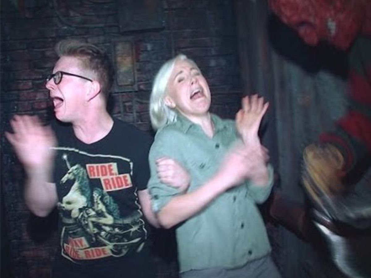 For those of us who may prefer a PSL over getting the crap scared out of us, never fear, Tyler Oakley and Hannah Hart are here! The gay dynamic duo brave Halloween Horror Nights at Universal Studios, and they catch every scream and "OMG!" on camera!