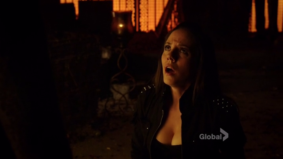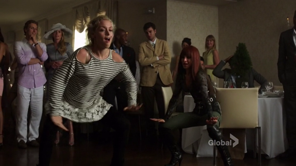 Back at the party of bad ideas Bruce's current master readies herself for a duel as Kenzi instructs Tamsin to use her powers of doubt to win. The valkyrie gets to choose the mode of combat and declares “I just want to dance!” leading to one of the more ridiculous events of late: a dance off to the death. Tamsin begins with some epic crazy dancing and is rapidly joined by Kenzi to re-enact a routine they practiced when living together. This scene is made so much better by the knowledge that both actresses have extensive dance experience.