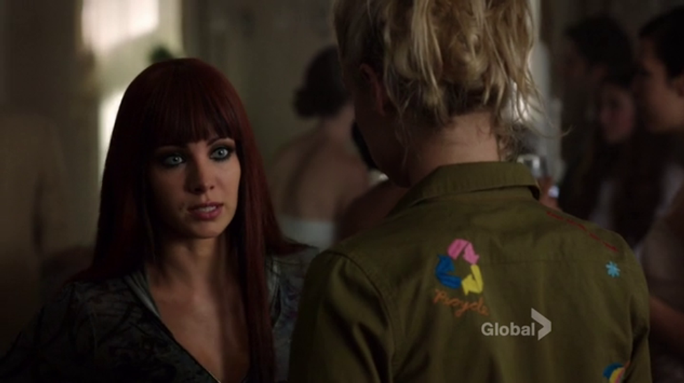 I enjoyed this episode a lot you guys! It was a bit heavy on the fae lore but so well balanced with the fun of a preposterous dark party and did I mention Lauren's attitude and also dress? I hope I was clear on that point. Speaking of clothing of the dark, a special mention is warranted for Tamsin's tween stylings complete with jacket featuring love hearts, rainbows and recycling. The best. I'm basically ready to pledge to the dark at this point and I'm hoping we get to see Bo at least consider it as her close association with the light always made the “unaligned” part of her brand feel a bit phony to me. More dark parties with deathly dancing and doccubus make out sessions please!