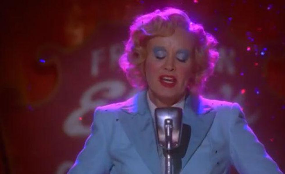 2. There will always be room for a musical number: Yes, AHS and Glee are spawned by the same creators, but for a ton of reasons they're completely different. However, when it comes to jamming out to a hit tune, these gleeks just can't resist. It took them mid-way through season 2 to given in to their musical fantasies, but this season Jessica Lange's tragically desperate superstar-wannabe opened the freak show with a captivating and glittery rendition of David Bowie's "Life on Mars." Was it completely necessary? Debatable. But now that a plot line involving Elsa's dreams of being a world famous singer has been revealed, it looks like there could be a lot more Bowie and blue eye shadow in our future. Trust us, we're not complaining. Yet.