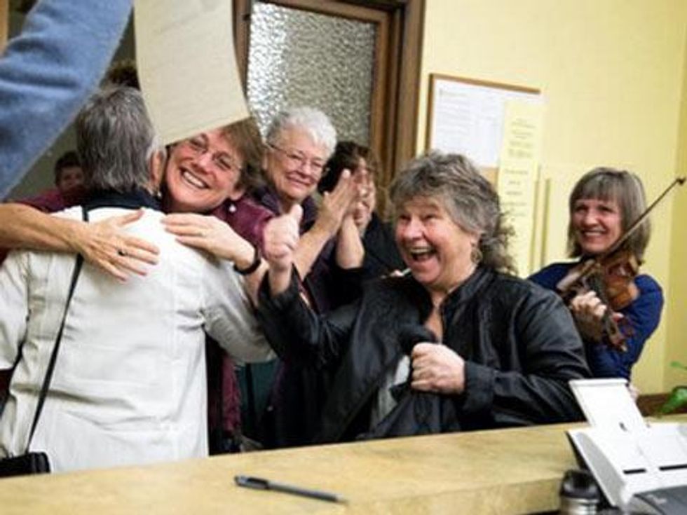 \u201c18 years in the making: Leslie burgess and Serena Early apply to their marriage license Thursday morning. #samelove\u201d— Kathryn Haake (@Kathryn Haake) 1416495879
