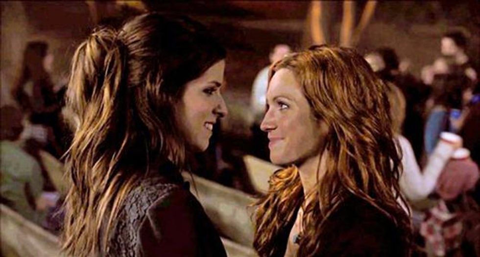 1. Beca and Chloe in Pitch Perfect 2: If you don't realize this was actually happening in the first Pitch Perfect, then you either haven't seen it or were paying the minimal level of attention. Beca and Chloe (that's Anna Kendrick and Brittany Snow) totally have "Bulletproof"-in-the-shower level chemistry, and we're aca-mistic that this connection will make a comeback in the upcoming sequel. Chloe may not have nodes, but she's got eyes for Beca and we're totally ready for that love duet.