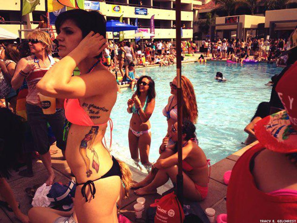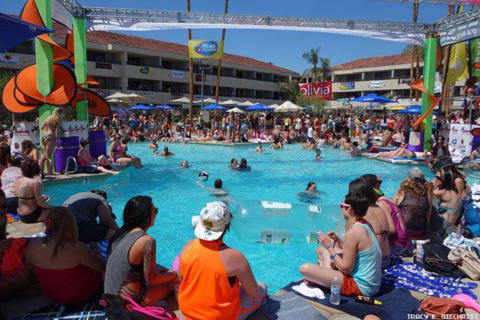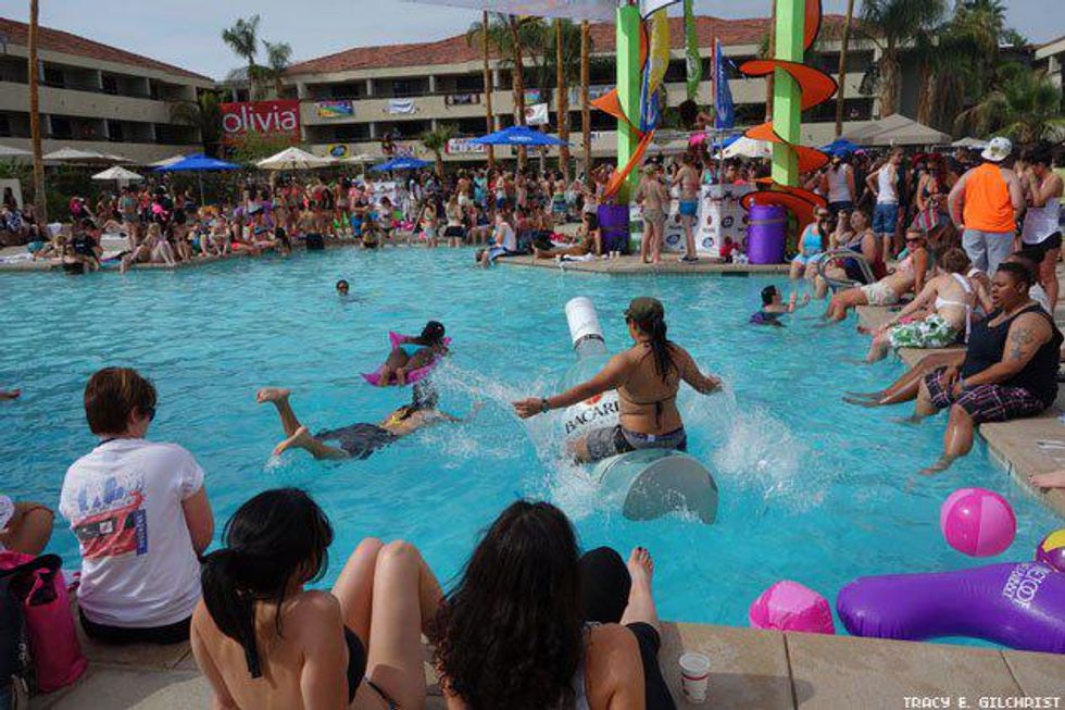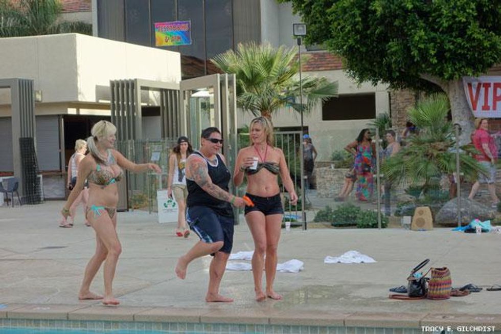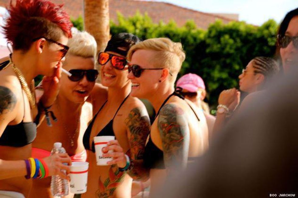 With the Dinah Shore Weekend 2014 fast becoming a memory we thought we’d save it for posterity with one final photo roll of all the bikini-clad women, celesbians, The L Word stars, Tegan and Sara, Mary Lambert, poolside debauchery, performances, and red carpets that ensued over five days of 10,000 lesbians taking over the desert last week. We’ve been back from Palm Springs for four days and have finally just re-hydrated after using sports drink tablets and Pedialyte. It was that epic!