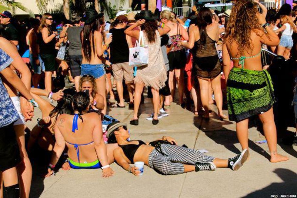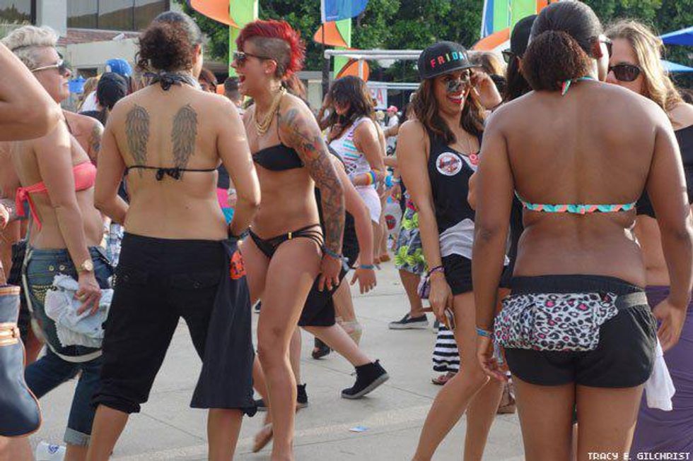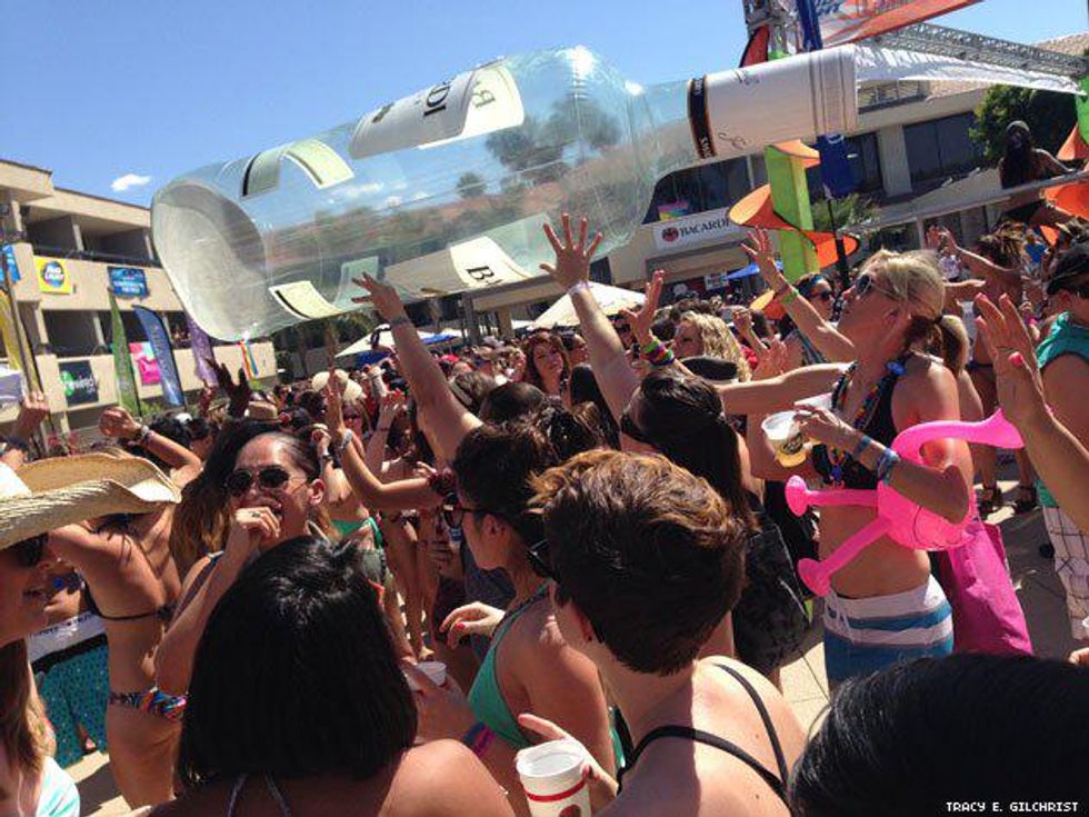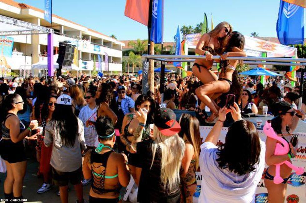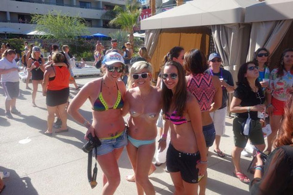 With the Dinah Shore Weekend 2014 fast becoming a memory we thought we’d save it for posterity with one final photo roll of all the bikini-clad women, celesbians, The L Word stars, Tegan and Sara, Mary Lambert, poolside debauchery, performances, and red carpets that ensued over five days of 10,000 lesbians taking over the desert last week. We’ve been back from Palm Springs for four days and have finally just re-hydrated after using sports drink tablets and Pedialyte. It was that epic!