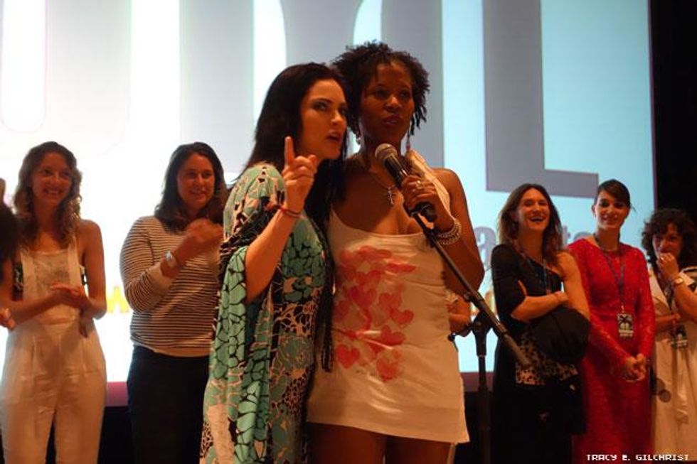 tello Films founder Christin Mell with Kiss Her I'm Famous director Rolla Selback and Tracy