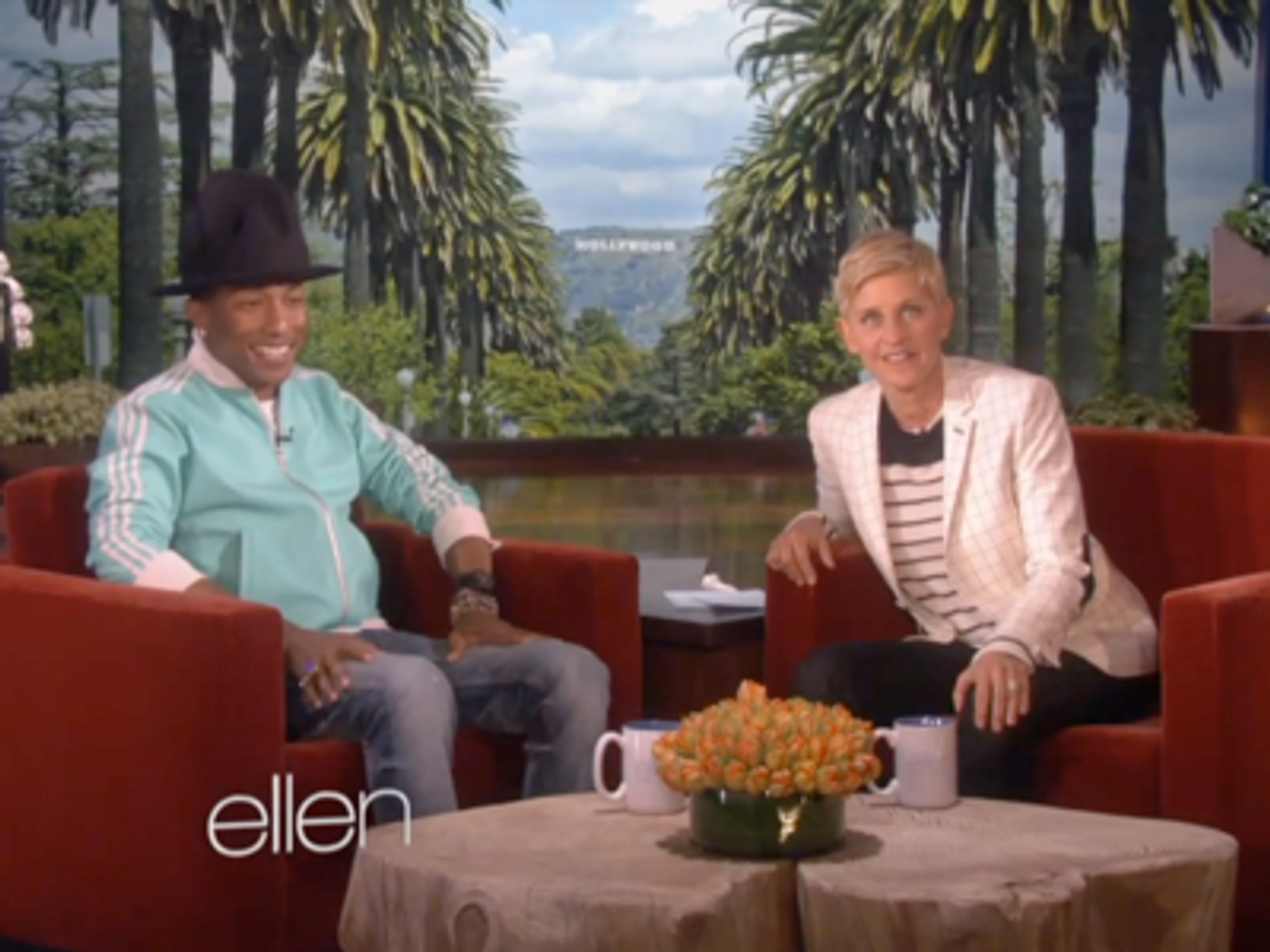 We're always "Happy" to see dynamic duo Pharrell Williams and Ellen DeGeneres together -- and the musical phenomenon's appearance on the comedienne's talk show yesterday was no exception.