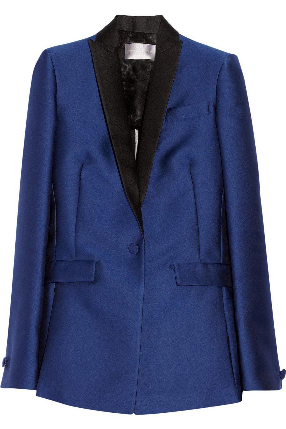 While not an exact match, what you are going for is a blue satin jacket. This one from Antonion Berardi is 2,430.00 If any of our readers are spending this kind of money, please kindly donate this jacket to the first lowly lesbian you see.