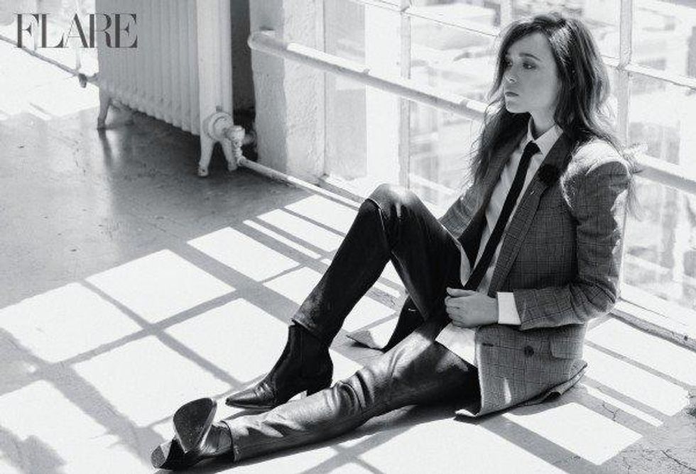 "Less than three weeks after her big coming out speech, Page attended the Vanity Fair Oscar Party wearing a leather accented Saint Laurent tux by Hedi Slimane. I felt happy and confident, and the difference was huge," said Page.