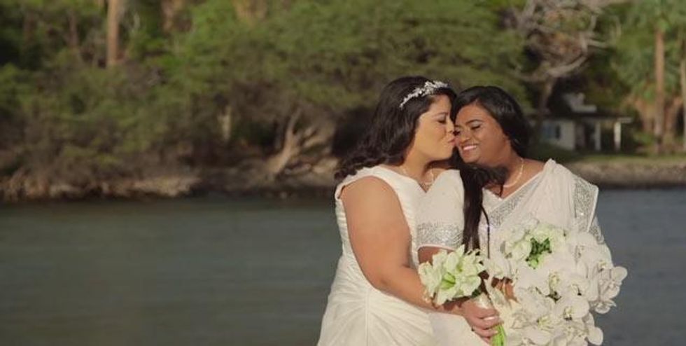 I'd be lying if I said I didn't watch this video several times specifically to try to read the tattoo on one of these brides ("life won't wait," by the way). Each time, though, my favorite part was their first kiss as wife and wife.