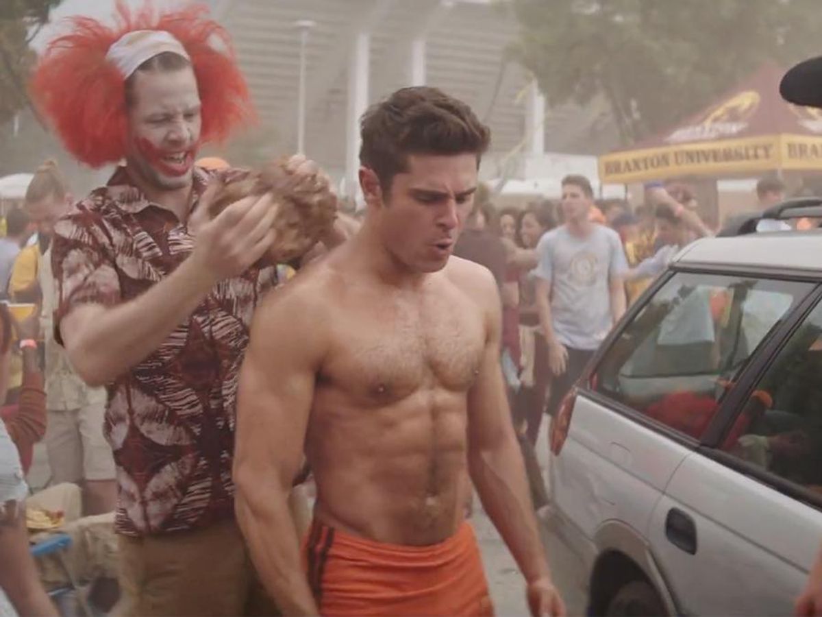 ...kind of hard to explain, I know. But moral of the story, Zac Efron is shirtless, oily, and looking ripped as all hell in this new Neighbors 2 clip. If sex sells, Zac’s already sold out every theater across America.
